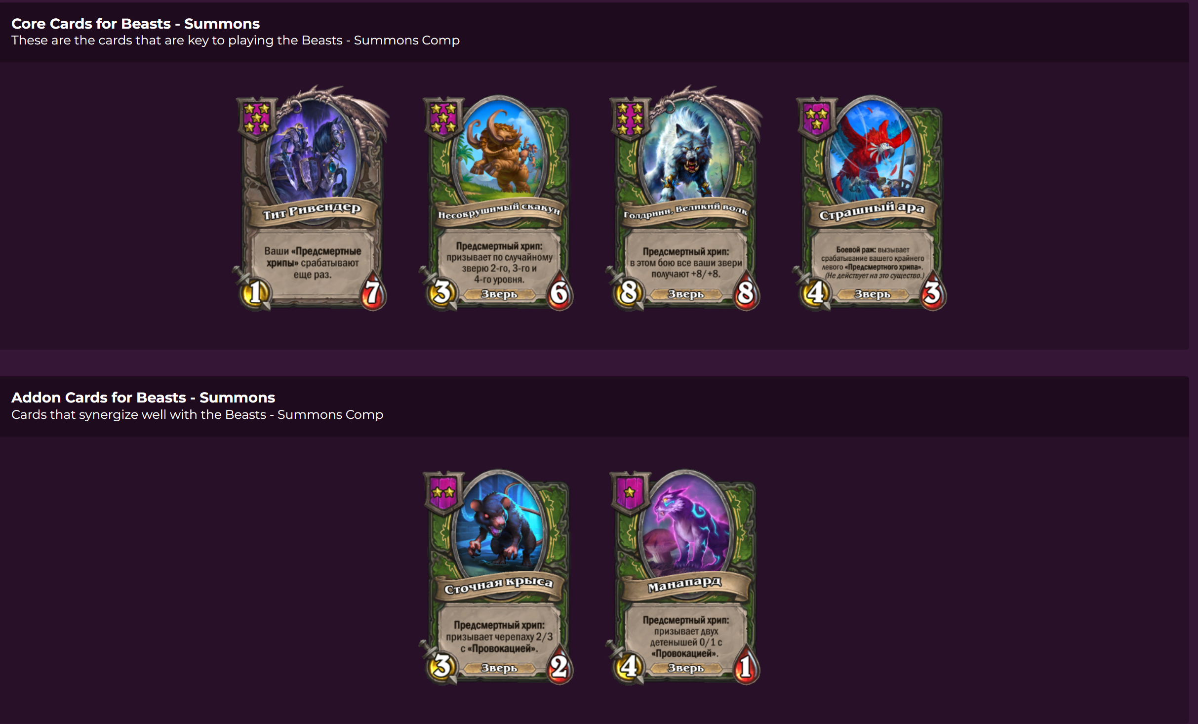 - Звери — Голдринн: Уже классическая стратегия для режима: Голдринн + Тит Ривендер + Страшный ара — и всё! Ваш стол готов уничтожать оппонентов. Несокрушимый скакун становится одной из лучших целей для получения баффов.