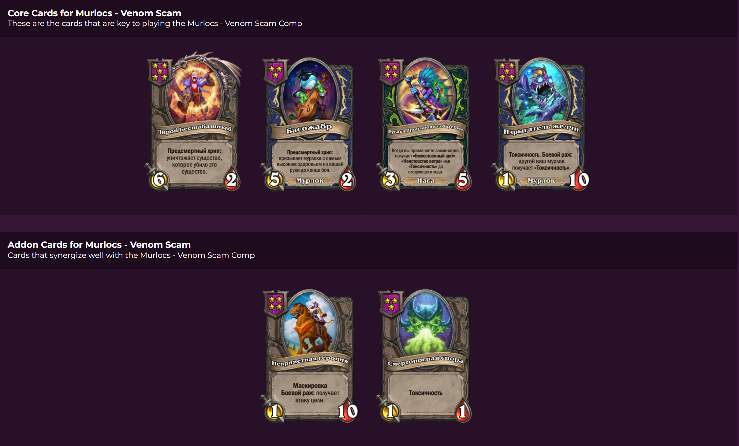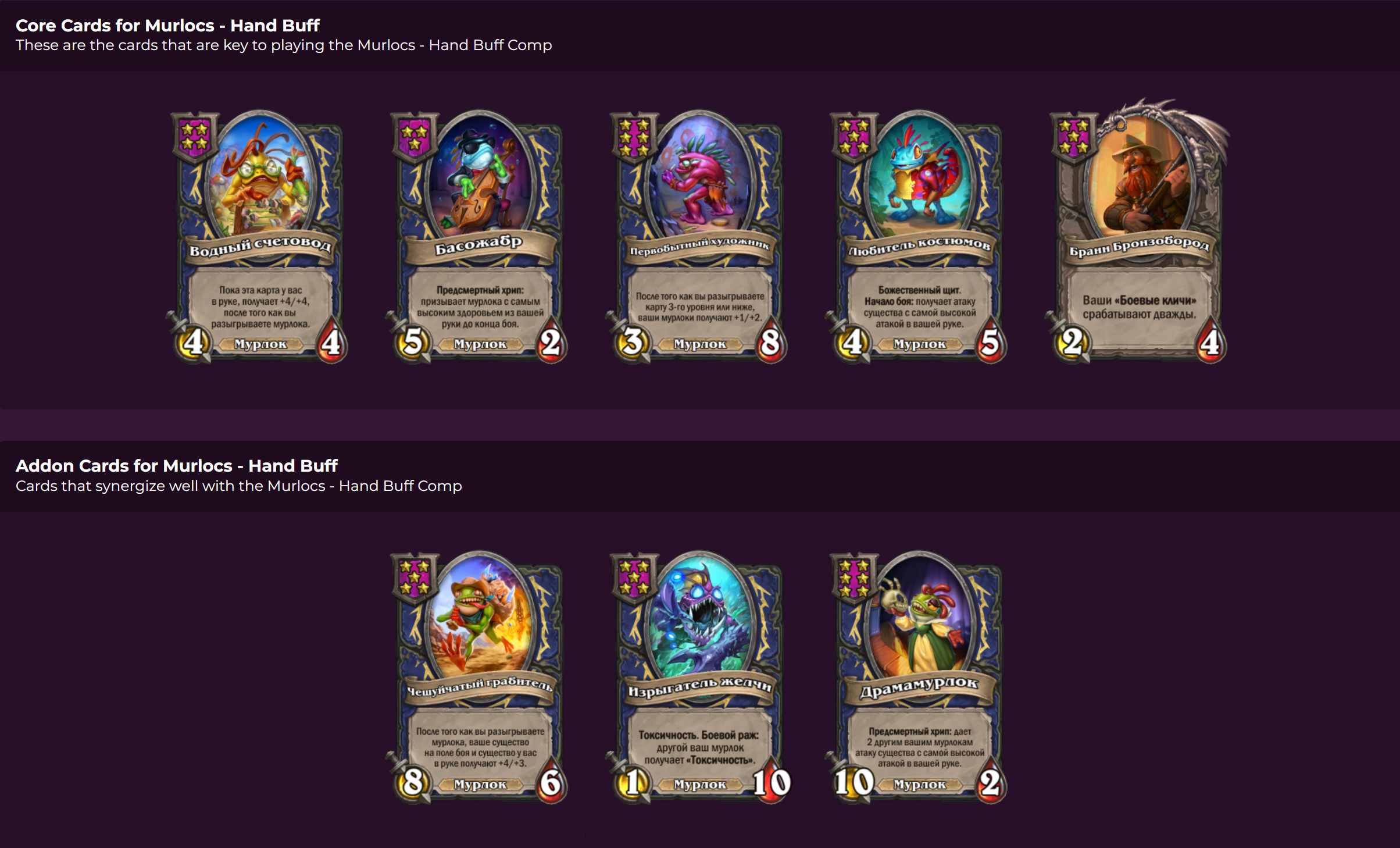 - Мурлоки — Скам: Всегда старайтесь выходить в эту стратегию, если у вас не получается собрать ни одну из других. Тут не нужно скейлиться, достаточно просто найти нужных существ.