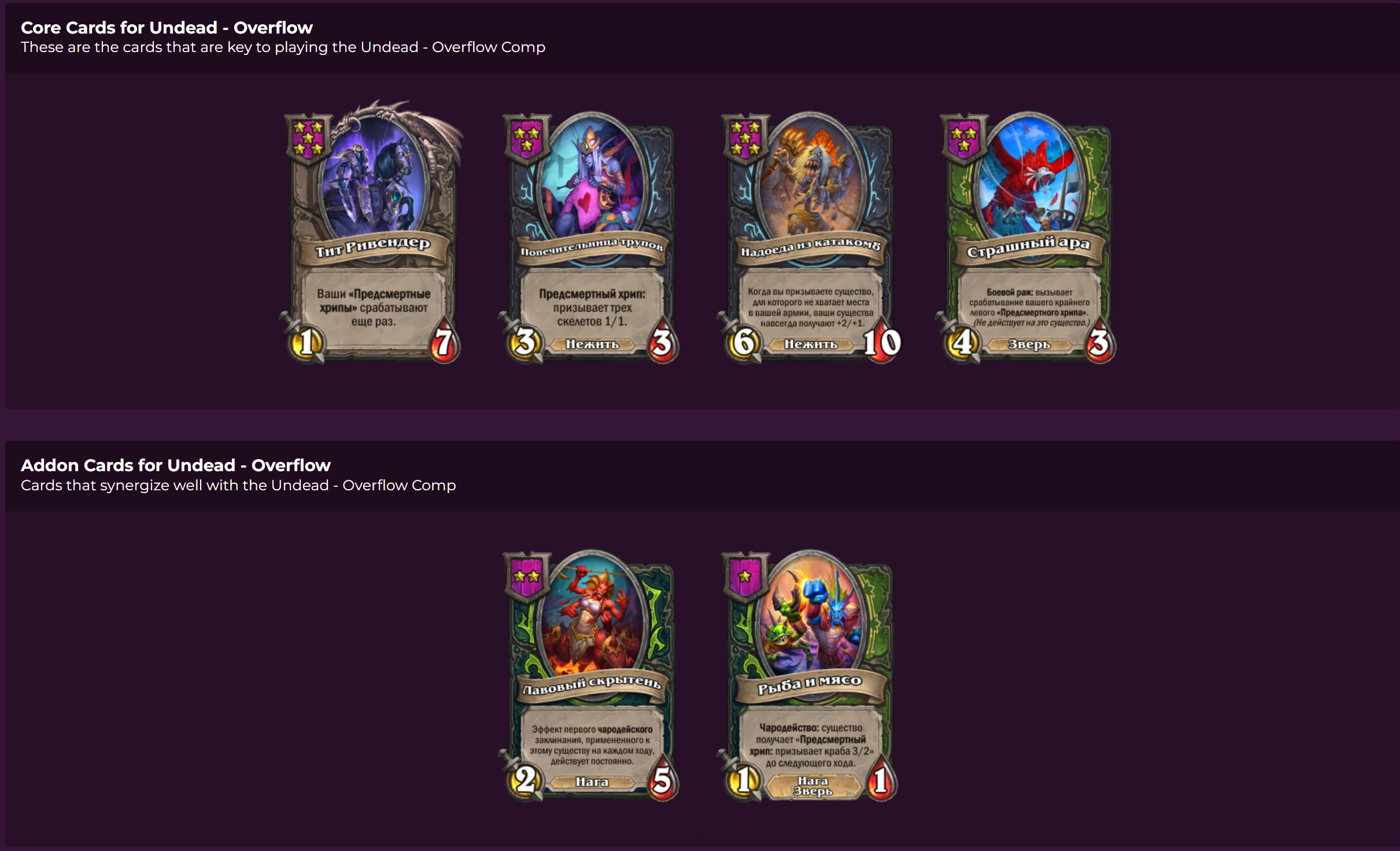- Нежить — Переполнение: Еще неделю назад это была лучшая стратегия патча. Удаление одного из ключевых существ сильно подкосило архетип, но он всё еще может показать зубы другим композициям.