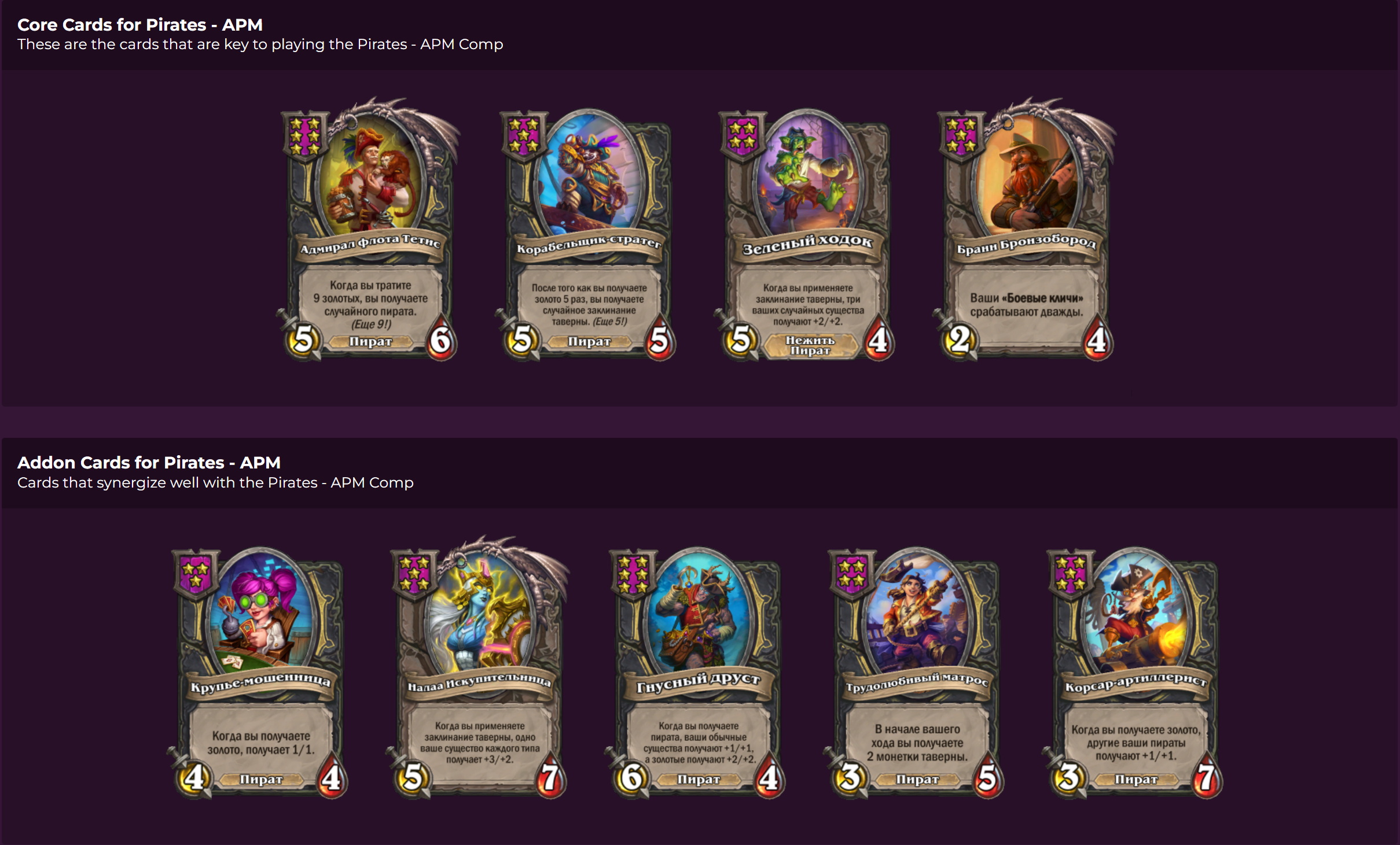 - Пираты — АПМ или Элементали: Только если вы реально реализуете их преимущество по темпу. HSReplay прямо маркирует АПМ-стратегии как сложные в исполнении.