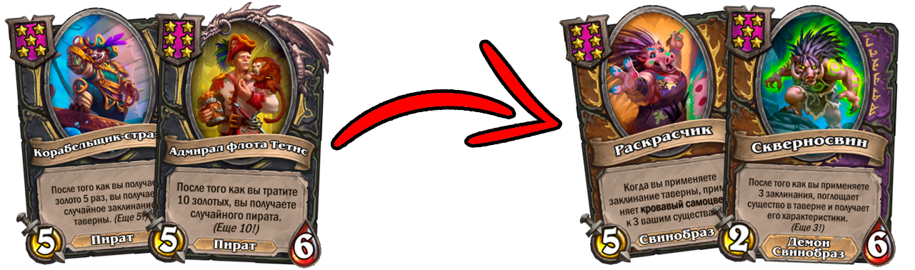 Этот способ отлично работает в актуальной мете. За примером далеко идти не нужно: Адмирал флота Тетис и Корабельщик-стратег, которые оба являются Пиратами, превосходно показывают себя в связке с Драконами, АПМ Свинобразами и другими популярными стратегиями.
