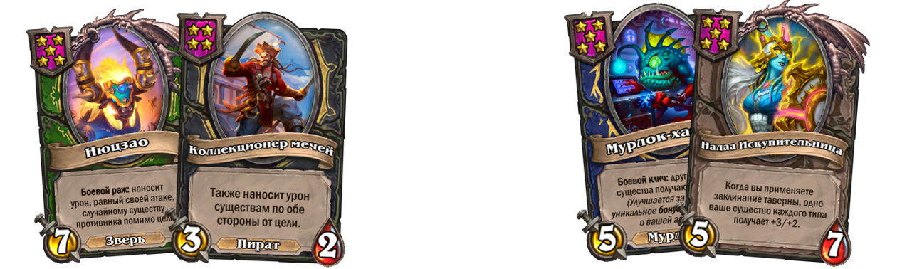 - Налаа Искупительница — отличный выбор для середины партии. Она дает существенные характеристики разным типам существ при разыгрывании заклинаний. Также она имеет усиленную версию в Хрономальной таверне.