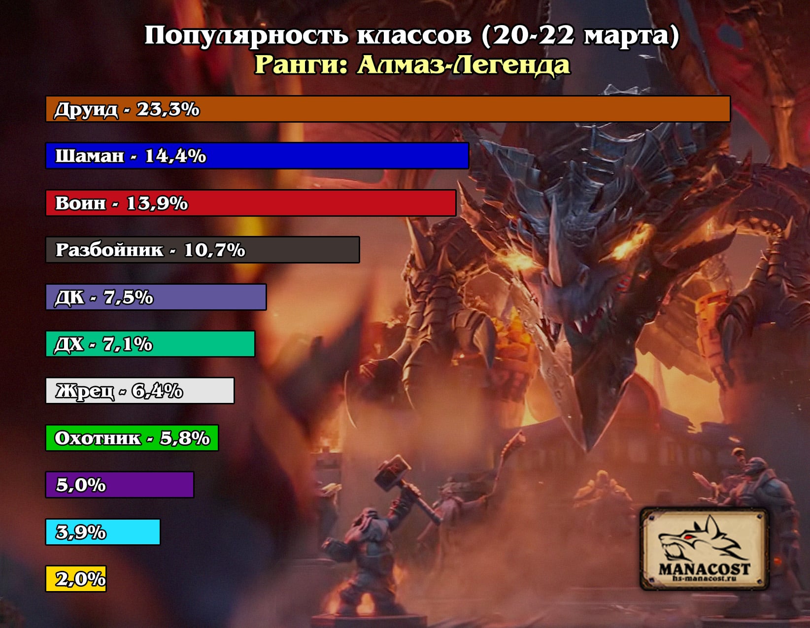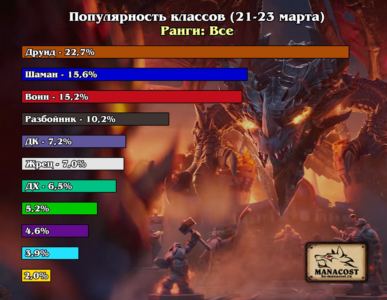 В первом отчете КАТАКЛИЗМА мы расскажем, как менялась мета Стандарта в первые дни после релиза. Вы узнаете, какие колоды стали лучшими в начале дополнения и как изменилось их положение в дальнейшем. В мета-отчете встретятся и самые свежие новинки последних дней, которые уже активно влияют на расстановку сил в Стандарте. Мы подробно разберем каждый класс, а в конце статьи вы найдете лидеров по популярности и винрейту на текущий момент.