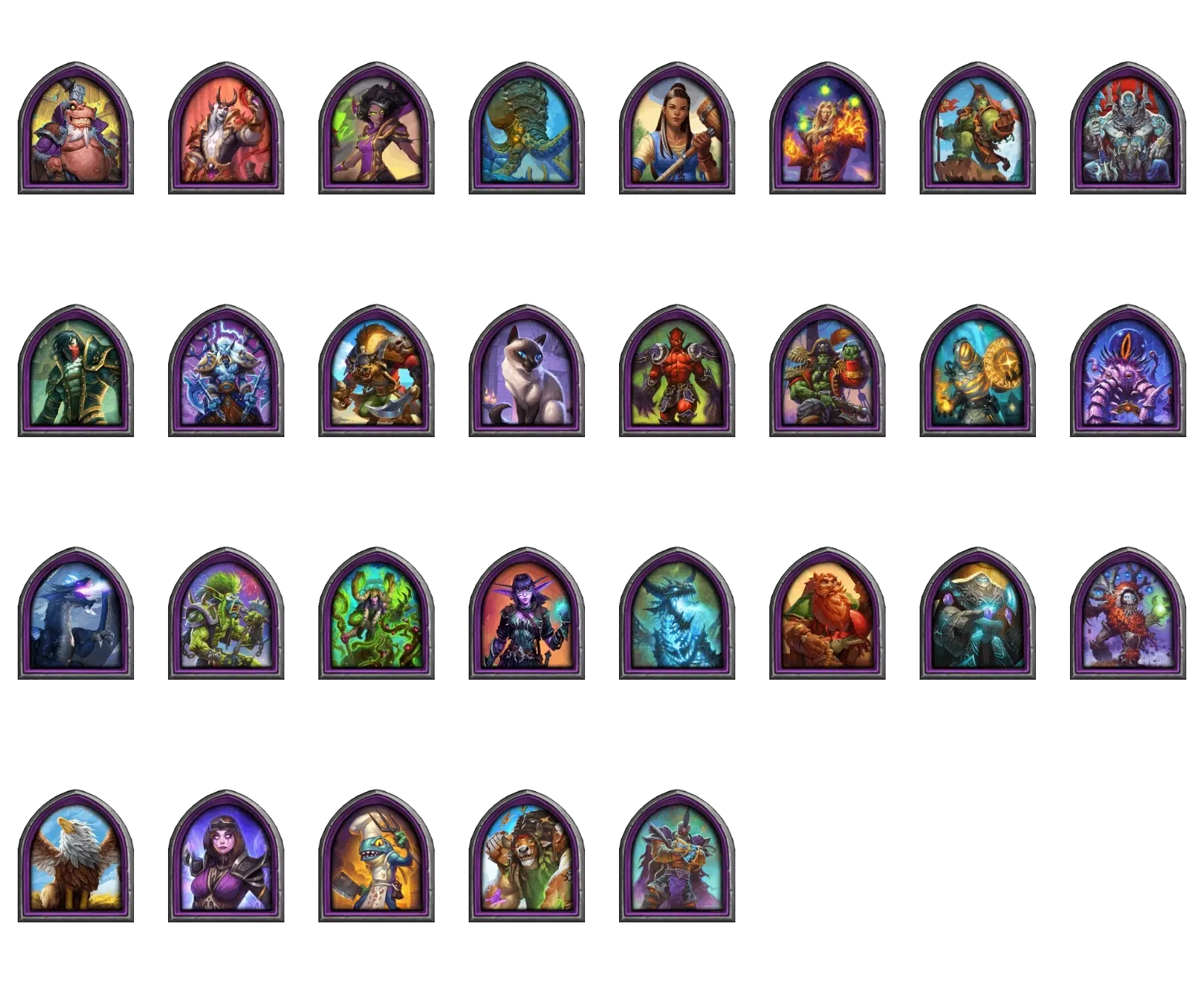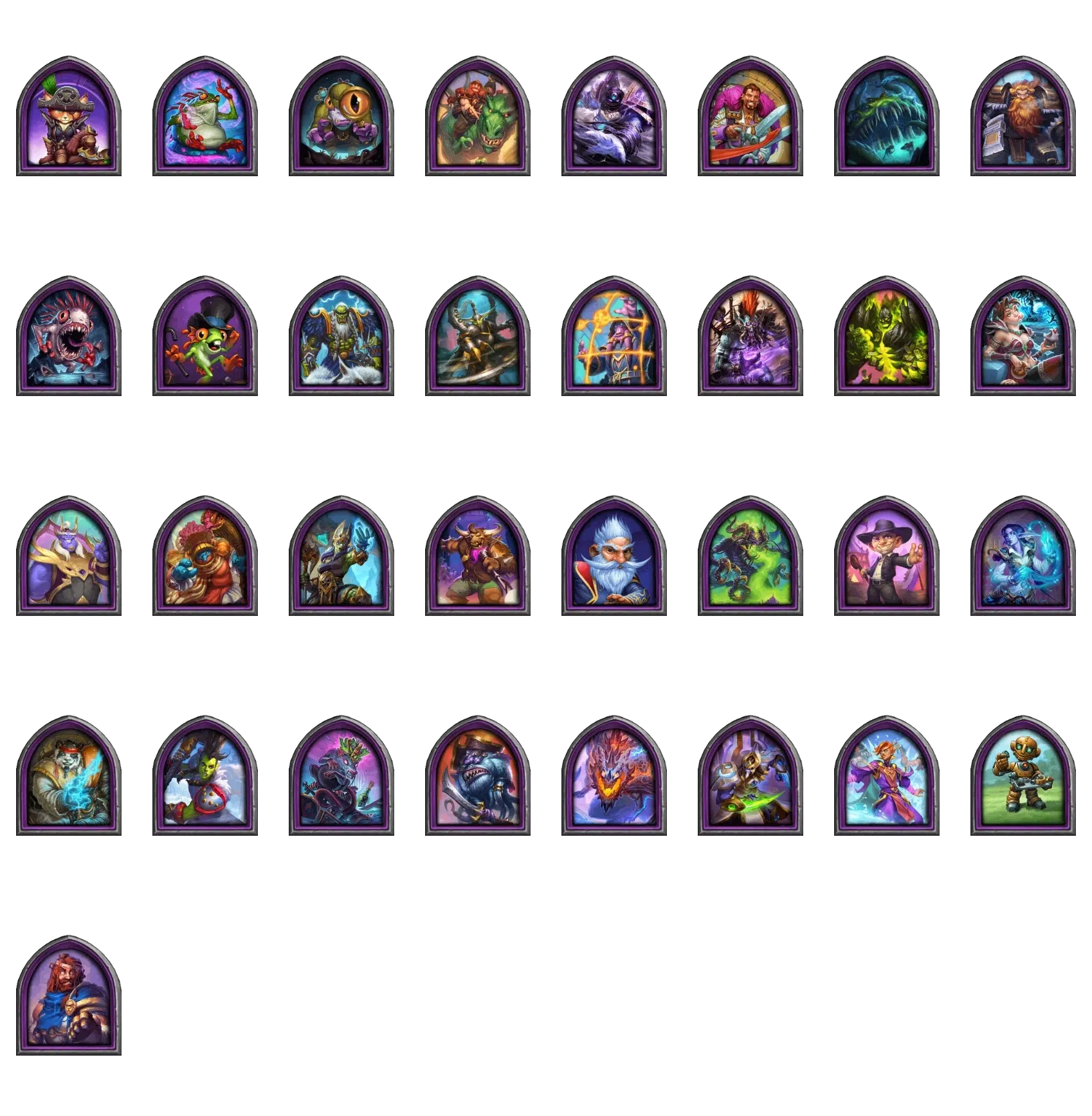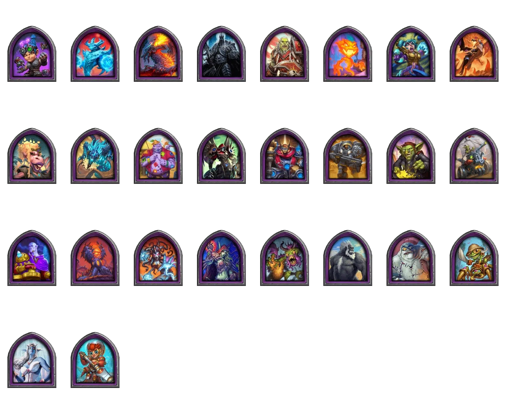 B-тир: Капитан Юдора, Грибомант Флургл, Мурлок Холмс, Укротитель ящеров Бранн, Ал’акир, Менеджер Марин, Йогг-Сарон, Вандар Грозовая Вершина, Мутанус Пожиратель, Танцор Дэрил, Дрек’Тар, Маиев Песнь Теней, Предсказатель Нобундо, Вол’джин, Билетикус, А.Ф.Ка, Посол Фаэлин, Доктор Гуляка, Инге Стальной Гимн, Музыкальный менеджер Е.Т.С., Миллхаус Манашторм, И’Шарадж, Сайлас Новолуний, Элиза Звездочет, Мастер Нгуен, Рокара, Крысиный король, Пират Глазастик, Галакронд, Артанис, Варден Луч Рассвета, Механо-усилитель, Джордж Падший