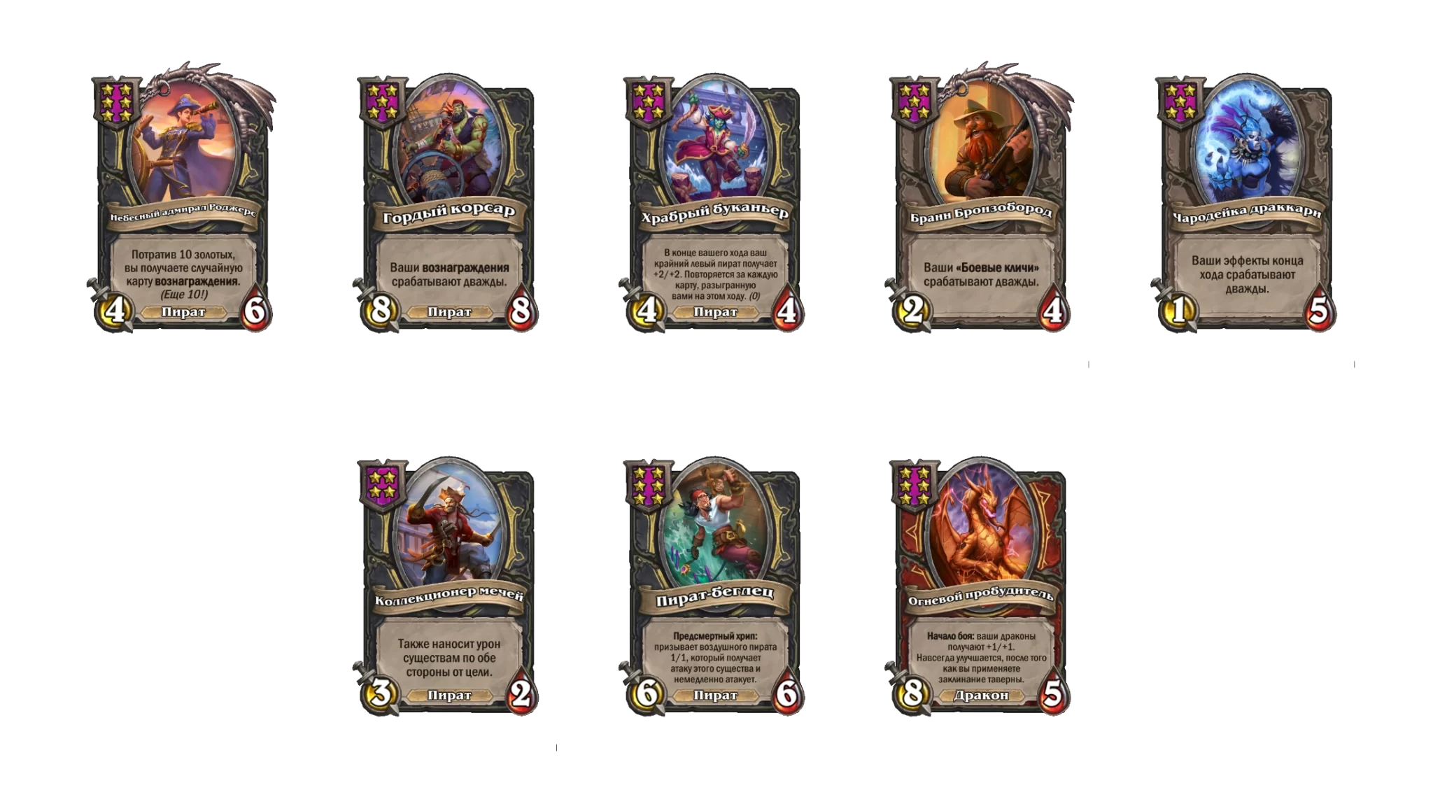 Пираты сейчас — сильнейшая раса в мете. При этом у них есть несколько вариантов реализации, а также возможность сочетаться с другими стратегиями. На данный момент сильнейшая стратегия Пиратов и, по совместительству, одна из сильнейших стратегий всей меты — это АПМ Пираты. Этот архетип был силён и в прошлой мете, но теперь к нам вернулась механика вознаграждений, которая, по мнению автора, сделала его ещё сильнее. Также важной новинкой для расы стал Храбрый буканьер в связке с Чародейкой Драккари. Из-за большого количества ресурсов, которые вы используете, Буканьер получает невероятно большие характеристики. Важно учитывать и то, что у Пиратов по-прежнему есть возможность собрать очень крупное существо, и этот план всё ещё выглядит отлично.