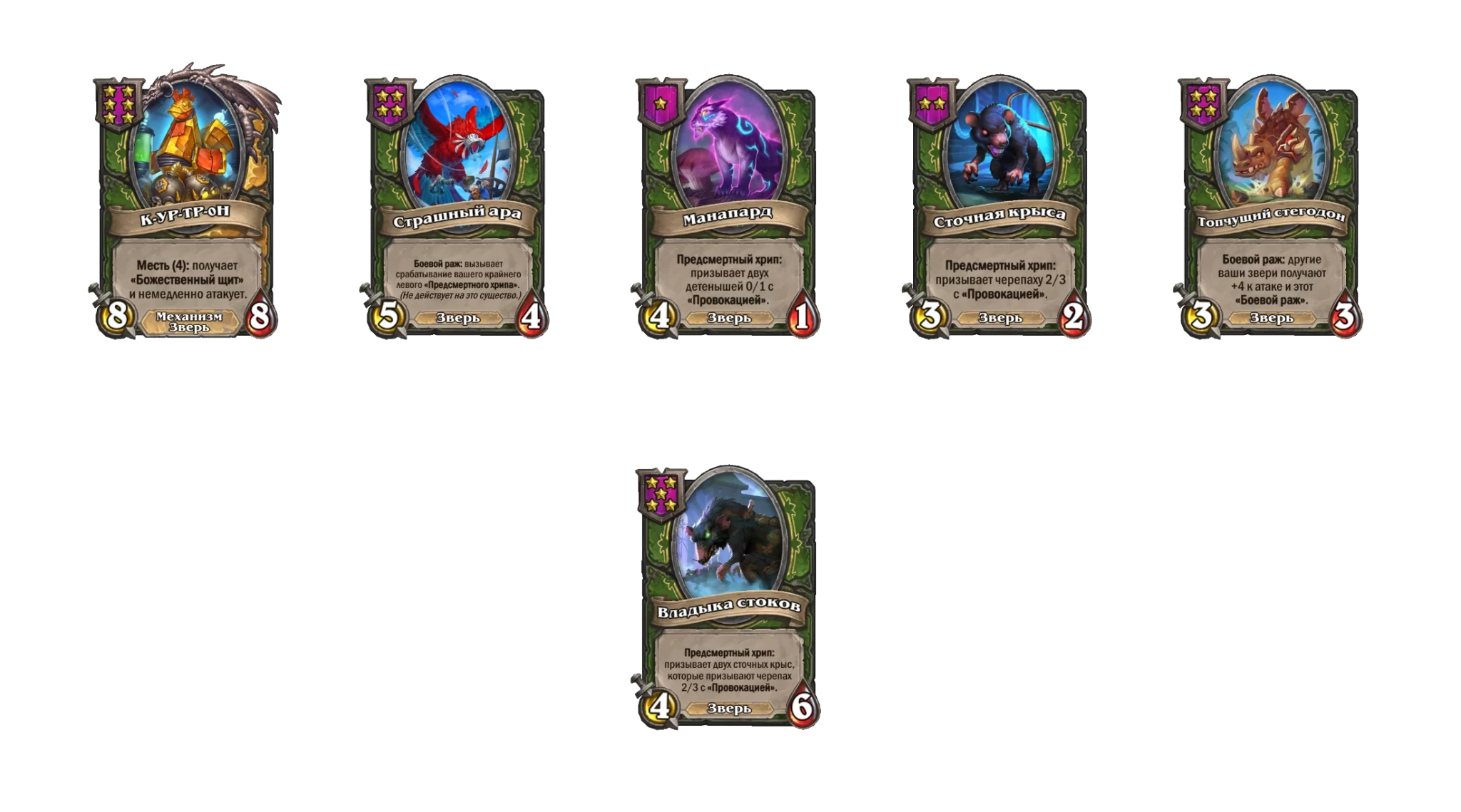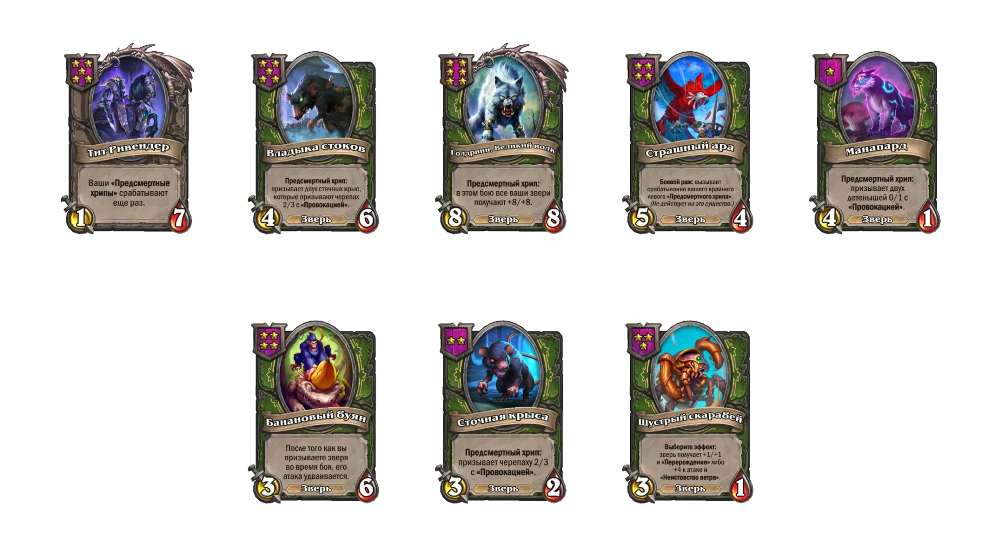 Последняя и самая слабая стратегия Зверей — это СПД Звери, которая строится вокруг Бешеной пантеры и генераторов Зверей. Архетип слаб по тем же причинам, что и многие другие слабые стратегии в этом патче: у него дорогие ключевые карты и слишком много времени уходит на усиление стола.