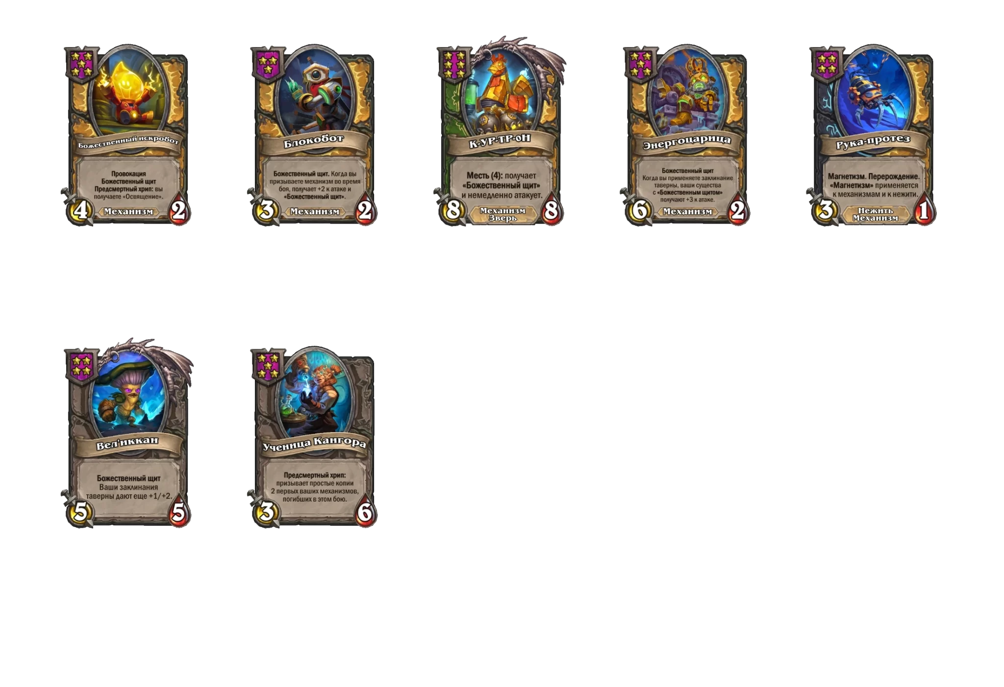 Вторая стратегия — это Механизмы через Божественные щиты, и у неё проблемы выражены ещё сильнее. Архетип объективно испытывает большие трудности с усилением стола, а для его эффективной работы обычно требуется высокий уровень таверны. В этом плане он менее удобен, чем стратегия через Механизм Предков, которой не нужна 6-я таверна.