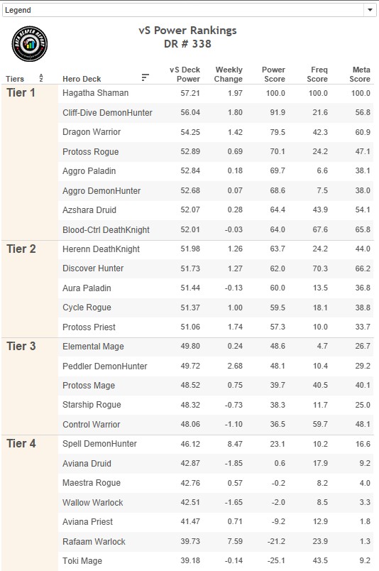 В первые пару дней обновления Спелл ДХ выглядел ужасно. Новая сборка появилась в топе Легенды позднее и показала себя значительно сильнее. Общий винрейт архетипа в результате оказался не на высоте, особенно на рангах, где больше распространена ранняя сборка первого дня. Суммируя, можно прийти к выводу, что винрейт Спелл ДХ очень быстро растет и колода может достичь тира-2 по всему ладдеру.