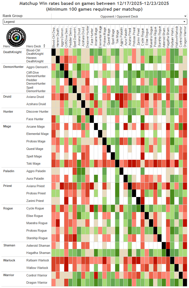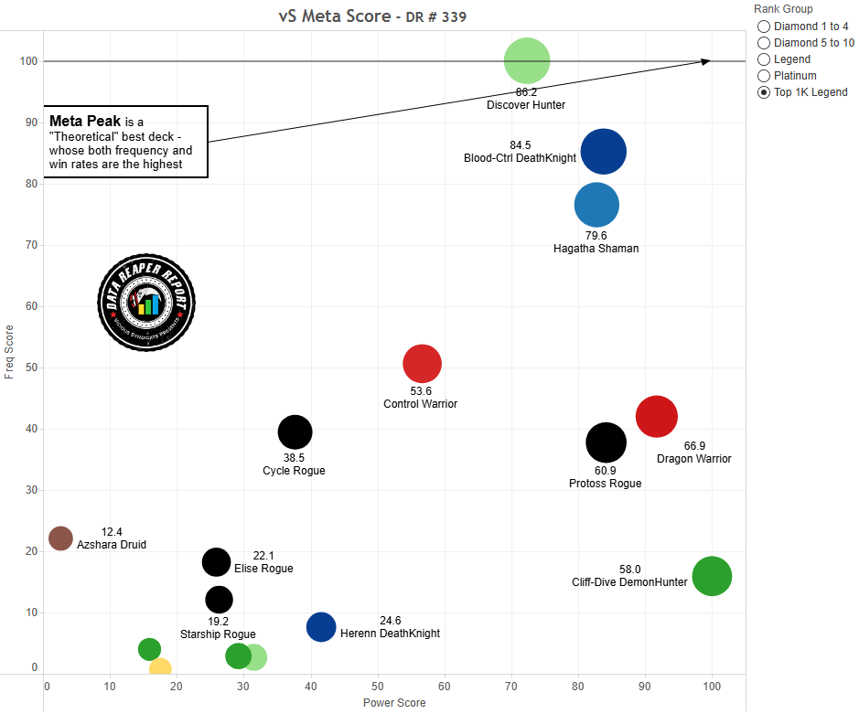 Эффективность Биг ДХсовершила скачок на всех рангах, и теперь колода является лучшей в любой точке ладдера. Особенно неожиданный поворот произошел в топе Легенде. Старая сборка архетипа возродилась в качестве отличного ответа на Разбойника. Для остальных рангов сборка с Элизой и Прожорливым охотником Скверны остается лучшей, но на высоких рангах старый концепт теперь более предпочтителен.