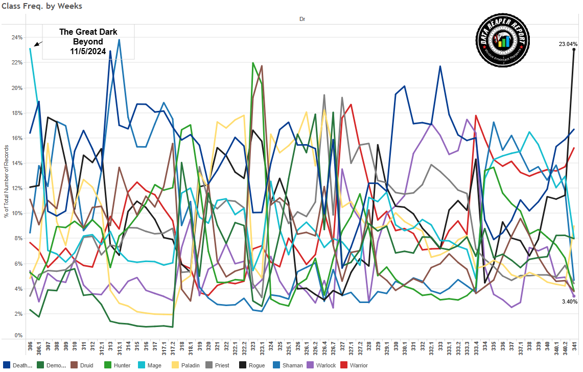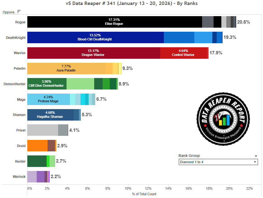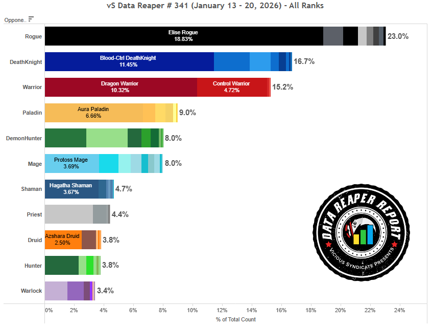 Новый набор карт для зарядки силы героя ожидаемо оказался очень привлекательным в глазах игроков и вошел в состав новых сборок Элиза Разбойника. Класс стал широко популярен на всех рангах и больше не является любимчиком только среди топовых игроков. Исторически сложилось, колоды Разбойника на воровстве всегда были популярны среди более казуальных игроков. Небольшое число Элиза Разбойников без новых карт по-прежнему существует, однако подавляющее большинство сборок в той или иной степени обращаются к зарядке.