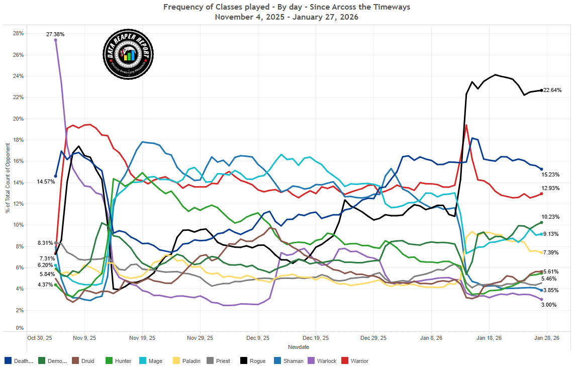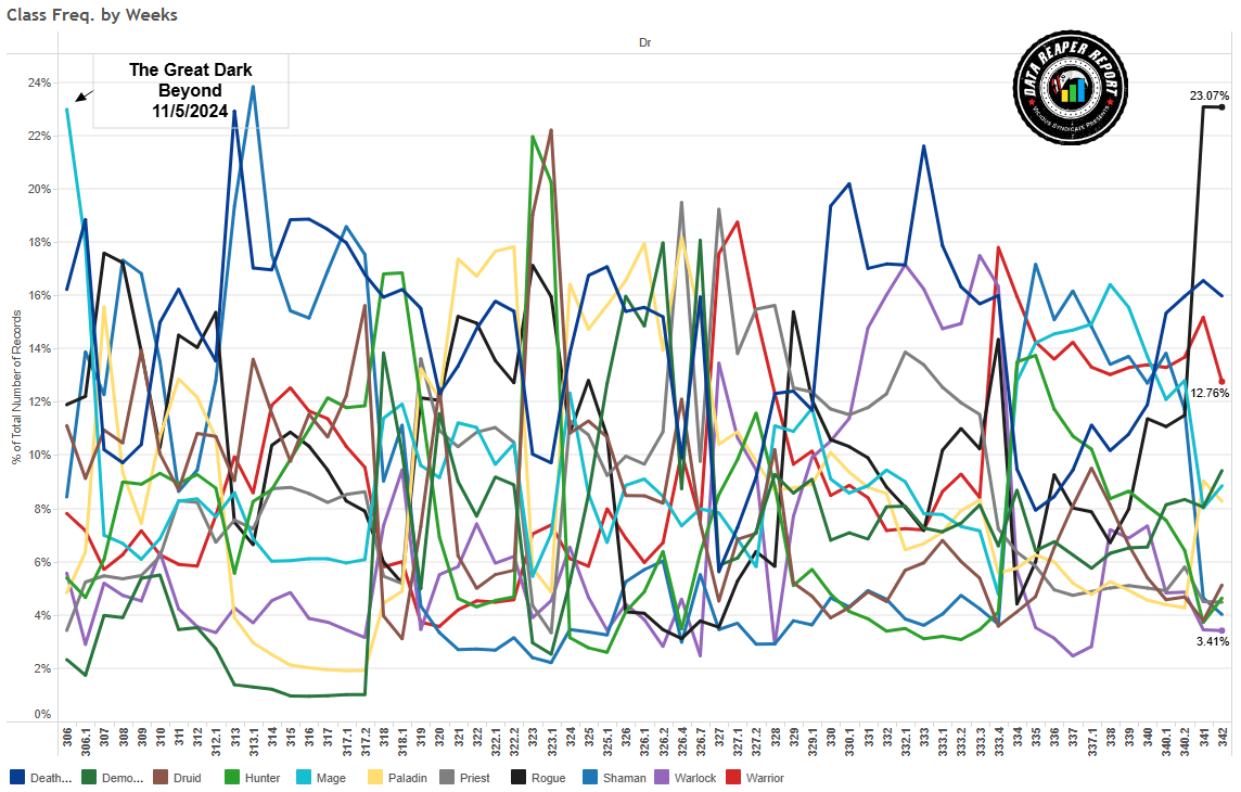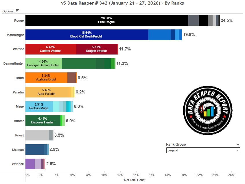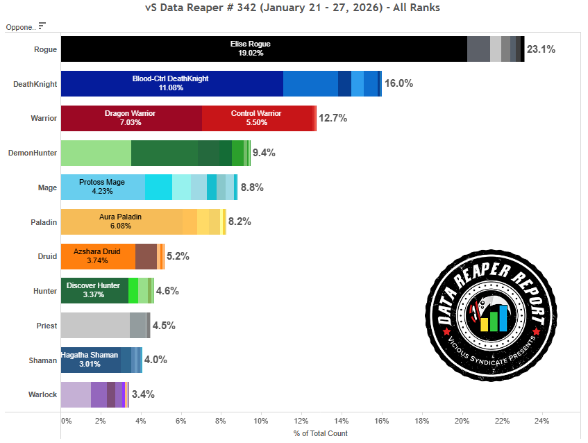 Знакомьтесь с новым мета-отчетом Потоков времени от Vicious Syndicate #342. Здесь вы найдете самые свежие метовые сборки, узнать о популярности классов, изучить таблицы матч-апов и сравнить силу различных архетипов Стандарта. В конце статьи вас ждут разрушители меты прошедшей недели.